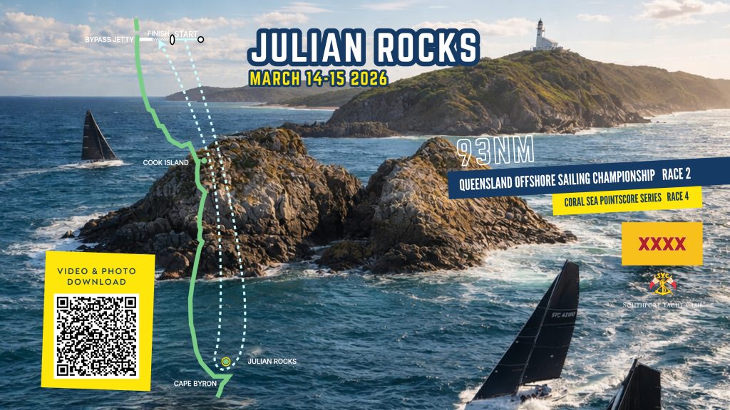 Our final Offshore special event race of the season, Julian Rocks is on next month 14th March! Julian Rocks is Race 2 of the new combined club Queensland Offshore Sailing Championships, and Race 4 of our own Coral Sea Pointscore Series. Entries are now open here. Don’t miss it!
